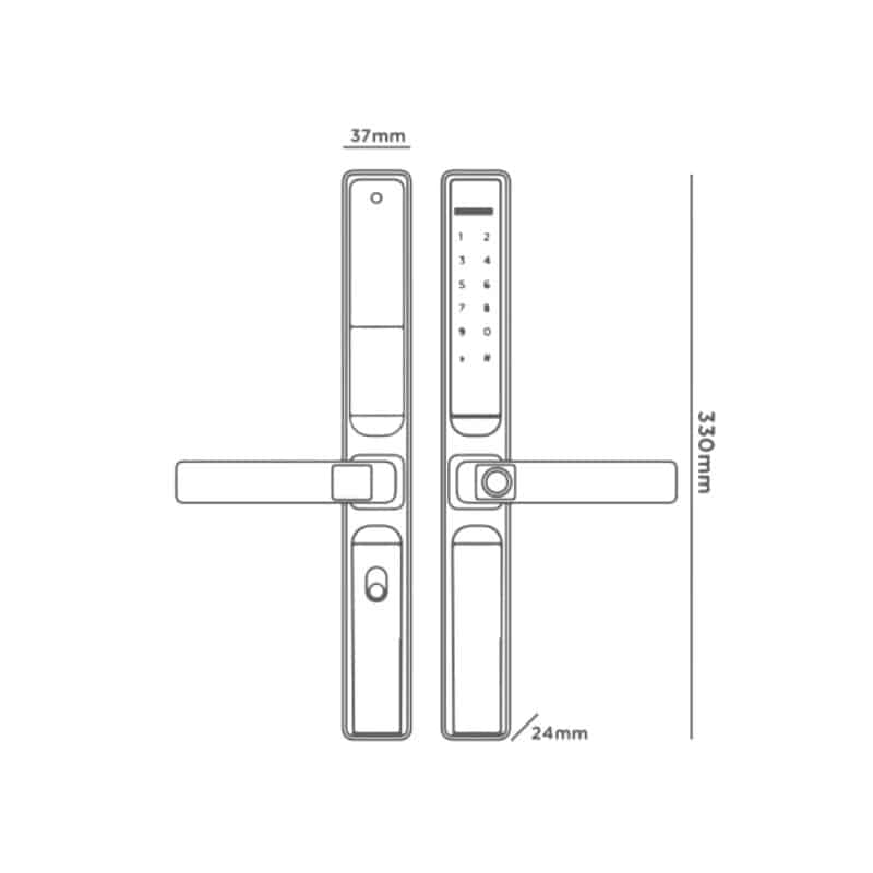 - Mở khoá bằng: Vân tay, Mật khẩu, thẻ từ, App Tuya, chìa khoá cơ