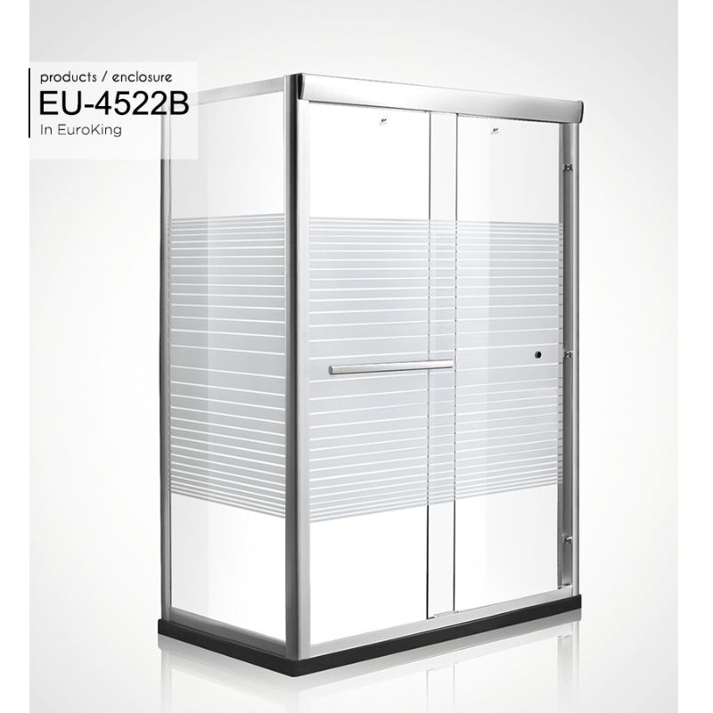 Phòng tắm vách kính EuroKing EU-4522B nổi bật với thiết kế hình chữ nhật, bao quanh là lớp kính cường lực, hoa văn kẻ ngang đẹp mắt.